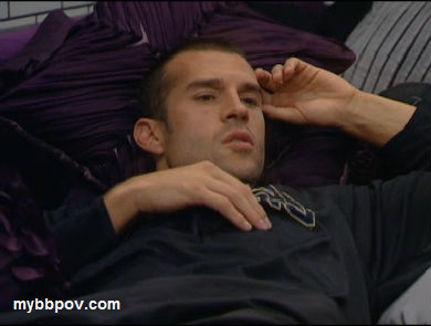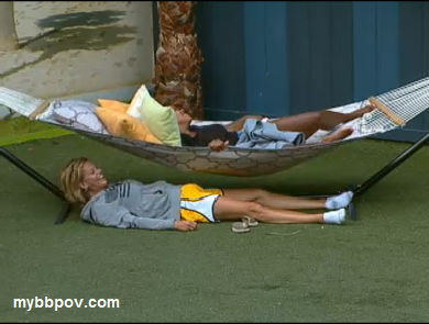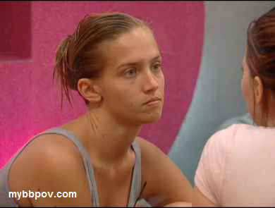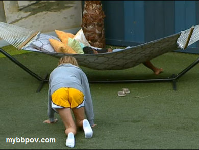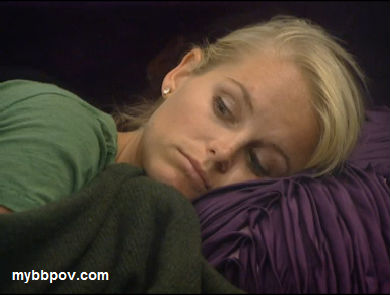 Meanwhile downstairs Brenchel are sniffling in the HN room. Rachel says she's not sure she can work with Jeff, that he's not really on their side. Brendon tells her that she'll be fine, she can still win the game, implying that he's planning on veto'ing her. They go into hyper-whisper mode, but he definitely tells her that he's going to veto her, and if he does get kicked it will be okay because he can go home and work on his PhD research. But he also says that they shouldn't tell anyone that she's being saved and let them all believe he's using the POV on himself. They both agree that they can't trust anyone but each other. They then start moving around the house telling others he's going to save himself and even having whispered conversations that no one else can hear about using the POV on Brendon. I really think they're doing that last bit just in case someone happens to overhear them, and maybe even hoping someone will to give their mislead more credibility.