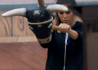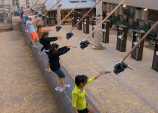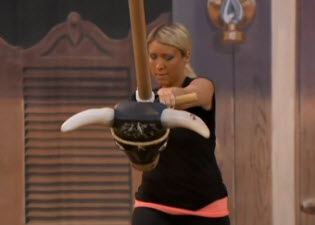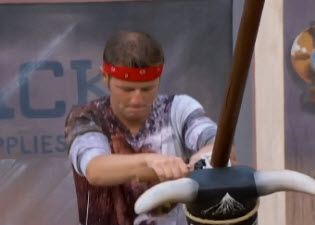 The endurance comp was basically a rerun of the BB11 Final HOH end. comp. with the added feature of smashing china. Other than a slip-up and an impressive recovery by Elissa while the liveshow was still rolling, they all stayed pretty solid for the first bit of the comp. Spencer was breathing so hard I thought he might pass out, but he was managing to hang on. But then BB started rolling the log in reverse and they fell like dominoes.