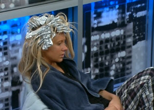 Speaking of color, Amanda's fully become an Oompa Loompa now. She finished up her sprayings this evening and has quite a glow about her. It's been an entertaining punishment. She's not enjoying it exactly, but she's taking it in stride. And to make it even funnier, a few of the other girls keep asking for turns in the spray booth and getting denied by BB. And for the ones who don't want bronzing, Amanda's been chasing them down and smearing tan on them.