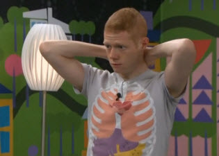 We rounded out the awkwardness with nonsensical nominee speeches from both Andy and Aaryn, and Aaryn was sent packing on a unanimous vote. Then the real fun began. I was expected very little since Julie's been warning us for weeks that she couldn't give evicted HGs any "news or feedback from the outside world." But instead, we got a mixed response from the audience, a smattering of clapping with some actual boos mixed in. And Julie's questions were direct and to the point. She asked Aaryn about the things she said, and was prepared with examples to back up the generalizations. Aaryn managed to offend new groups (Texans and southerners in general) with her defense, and claimed she didn't remember saying any of those things. She may well not remember--which is just further proof that the sentiment comes from inside her, not an attempt to be a controversial character. She got more snickers and boos from the audience when she claimed that she and Candice were actually close friends. She also said she loved and adored Helen, which is true, but will not be remembered. [My only caveat is that I couldn't help but wonder if this wasn't another stunt audience, told to boo/laugh. I'm not saying it was, but after what BB pulled with the wildly positive stunt audience for Howard's eviction, I don't trust them.