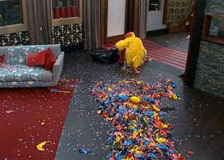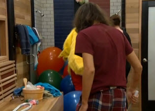 In other news, the "special comp" turned out to be a pure luxury comp, popping balloons in search of some kind of token to win $10K. Chicken Spencer ended up the winner. The whole house was a mess of balloon detritus afterwards. I'm just glad there wasn't a veto ball or some other power involved.