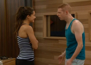 So when they came back from trivialand, the fireworks were flying with McCramanda on the block. McCrae's been pretty quiet and sulky, but Amanda stomped around and screamed at pretty much everyone. She was absolutely flabbergasted that GM would make such a move, and spared nothing in telling her how dumb it was. GM held her ground firmly and explained that she had to split up the one obvious pair in the house. She also completely owned her own nominations. When Amanda accused her of doing Elissa's dirty work, GM not only strongly (and truthfully) denied it, she did nothing to throw her alliance under that fabled bus.