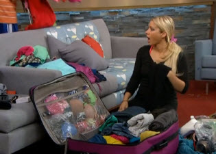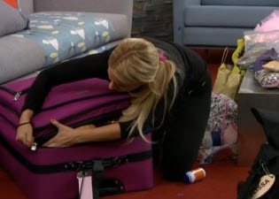 And back inside it is super nasty. They're all talking about how glad they are that Elissa's gone and now they can use whatever foul language they want. GM packed up Elissa's stuff, complaining about how much she had, and looking enviously at the labels.