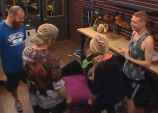 Late breaking update: They went off to play the 2nd HOH about an hour before BBAD time. When BBAD started the comp was still ongoing which led to nearly an hour of amusement watching Andy, who had been eliminated already, wander around the house alone. At one point McCrae came in to use the potty and w got a few seconds of chatting, with no real information except that production was all over them to not talk about whatever was going on. BBAD also spent some time in the fishtank, which was much more pleasant than listening to the ETs talk shit. Judd was eliminated next from the HOH comp, and then we shortly see Spencer with the key.