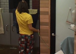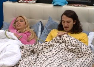 A small amount of entertainment was provided today by punishments passed out after the HOH comp. GM and McCrae are linked together for 24 hours with "friendship bracelets" and a rope, and Judd has to do drill sergeant led calisthenics every time a whistle sounds. Andy had a chance to win up to $5K in some comp-type thing that happened behind trivia. Whatever it was, he says he only got $94.