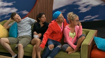 So we've got the original Bomb-Squad of Frankie, Caleb, Zach, Devin, Derrick and Cody, plus the 2 women. An alliance that big is bound to implode quickly and we're already seeing cracks. Most of them are wary of Devin and how erratic he seems, and a lot are concerned about Caleb. And to be fair, that's probably because Caleb is nuts. He developed a ridiculous showmance/crush/obsession for Amber within apparently moments of meeting her. He spent a few days talking about her, but not to her, like a 12 year old girl. He finally awkwardly told her how he felt. She tried to let him down easy, and he fell into a deep depression. Next thing we know Devin is telling Caleb that Amber is totally into Devin and not Caleb, and Caleb became psychotically depressed. At this point even Amber saying goodnight to him causes him to fall into hours of whining and moping. And as far as I can tell, Devin basically made the whole thing up just get Caleb more wound.