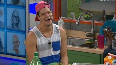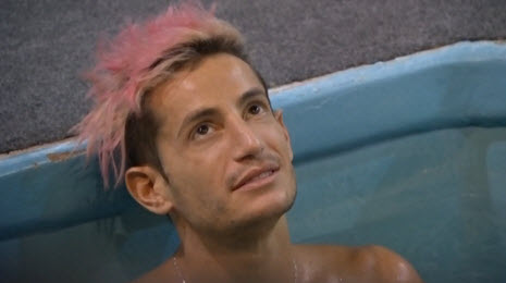 Then Monday night Caleb, Zach and Frankie were out in the BY and heard fans shouting outside the wall. It was clearly "....hate you! Zach we love you! Frankie you're [something not good]" The HGs ended up on it was "Beastmode we hate you! Zach we love you! Frankie you're disgusting!" Out here someone posted on Joker's that they had done it, and it was actually "Attention Frankie: America hates you! Zach we love you! Frankie you're disgusting!" Zach was clearly tickled, having only heard retells of the last shoutout he got over the wall.