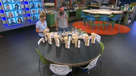 Derrick quickly decided (because let's not even pretend that Cody's deciding anything this week) that Donny and Nicole should go up. Donny was The Target, but should he happen to win POV, Nicole would go. There were some rumblings about backdooring Frankie, but Derrick seems to have decided that it's a bad idea. Meanwhile Frankie popped up to HOH at one point to tell Cody that if he gets to pick HNs this week it should also be Donny and Nicole. So when the "squish kabobs" rolled out that's precisely what Cody did.