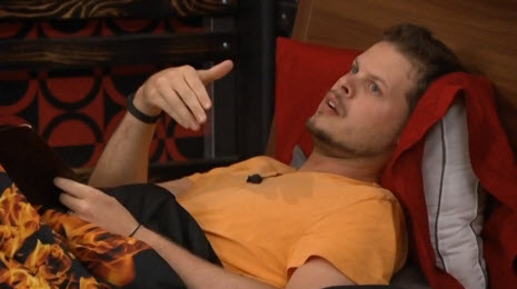 Next Caleb goes up to HOH to talk with Cody. This seems particularly dumb to me. They know Cody wants to keep Nicole, but he has no power left this week, and can't play for HOH, so why not just do what they want and make up with him on the flip side. But that's not Caleb's style. So he lays out his thoughts, Cody says no f'ing way. Frankie and Derrick both show up and eventually Caleb polls the room. Cody says keep Nicole, Frankie says keep Donny, Derrick says he's on the fence.