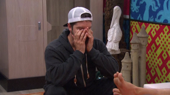 Before long Jeff was on the block and noticing that though he supposedly had an alliance with just about everyone in the house, almost no one was going to vote for him to stay. Jackie had his back, of course, which just convinced the rest of them that there was some sort of TAR twist where they'd get more money if they both stayed in the house. John pulled out another Dan BB10 card and openly acknowledged that he was going to vote for Jeff out of loyalty, even though there was no chance of him staying.