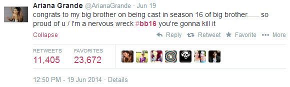 The RTs of that tweet account for literally about half the twitter traffic on the #bb16 hashtag at this point. I'm really hoping that drops off significantly once the show actually starts, but I'm afraid that Team America is going to be a re-run of the MVP and Frankie is going to be this year's Elissa. Even worse than Elissa because at least Rachel was known to BB fans for BB. If Ariana starts telling her fans to go vote for Frankie, we'll get lots of people who know little to nothing about BB chiming in.