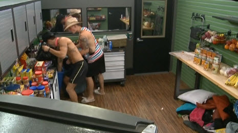 Zach, being Zach, just laughed it off at first, and even did his usual, yeah, yeah, I'm the Saboteur thing. But he started to realize he was actually in trouble and it stopped being funny. The Watch had officially started, and when Zach tried to go into the DR he was followed by Derrick/Caleb/Cody. They did a 4-way DR, that was actually probably pretty funny. Zach eventually got solo time, and when he came out, he seemed to really know that they were all after him. He then rather randomly nicked the cue ball off the pool table and ran to hide it in the bathroom trash. Caleb caught him and this led to Caleb and Cody shortly after checking all the trash bins and finding the booty. This all was taken as evidence that Zach was the culprit. Zach kept denying it, but also realized that Frankie wouldn't look him in the eye, and knew this meant he was about to get shanked. He talked with Caleb a bit, who told him that his antics were the reason. For awhile Zach legitimately believed he was going up because he stole a cue ball. But then he talked with Frankie who told him the truth--they all wanted him out.